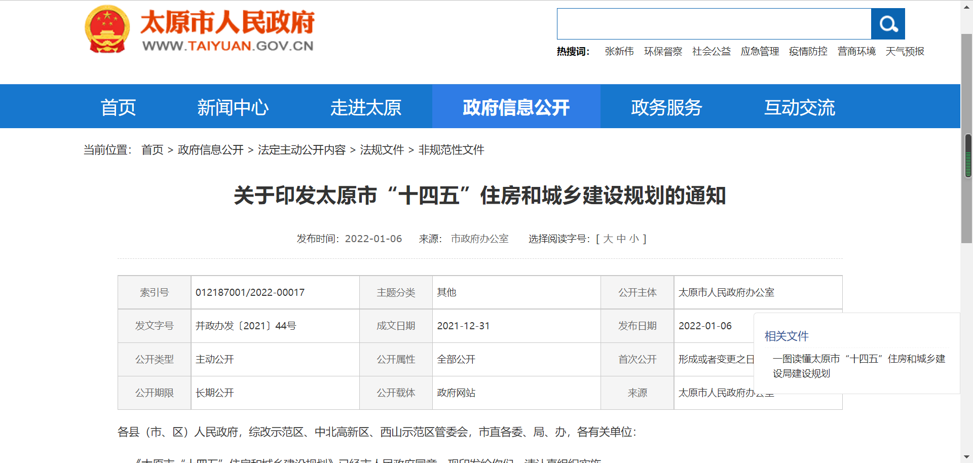 點(diǎn)擊藍(lán)字關(guān)注我們泰華遠(yuǎn)大做最精心的裝配式建筑企業(yè),成就精彩員工夢想。太原市人民政府關(guān)于印發(fā)“十四五”住房和城鄉(xiāng)建設(shè)規(guī)劃的通知并政辦發(fā)〔2021〕44號各縣(市、區(qū))人民政府,綜改示范區(qū)、中北高新區(qū)、西山示范